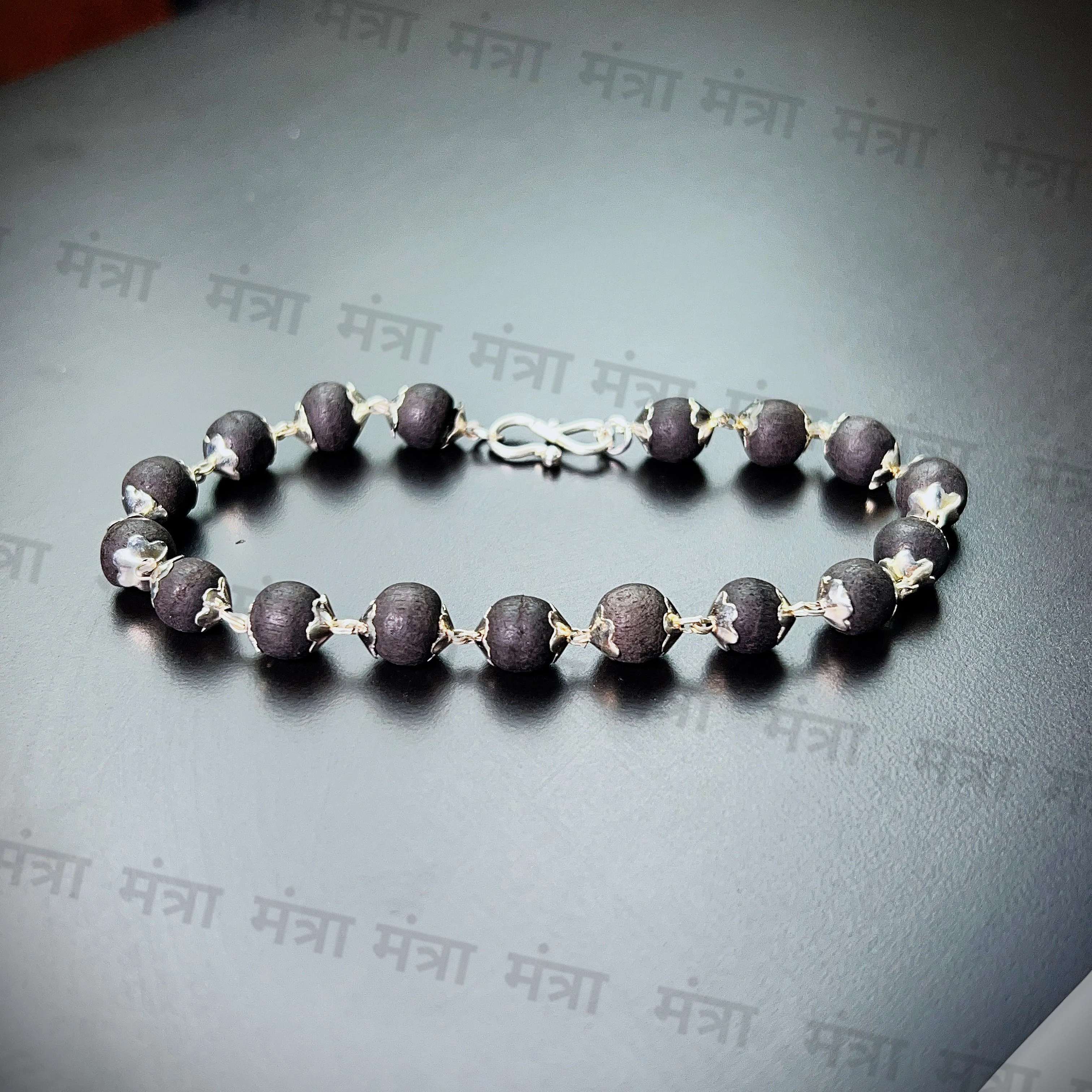 Crafted from the sacred Karungali wood and adorned with silver-plated accents, this bracelet is a powerhouse of protection, strength, and spiritual elevation. Karungali is known for its deep-rooted significance in ancient traditions, believed to absorb negative energies and enhance inner stability.