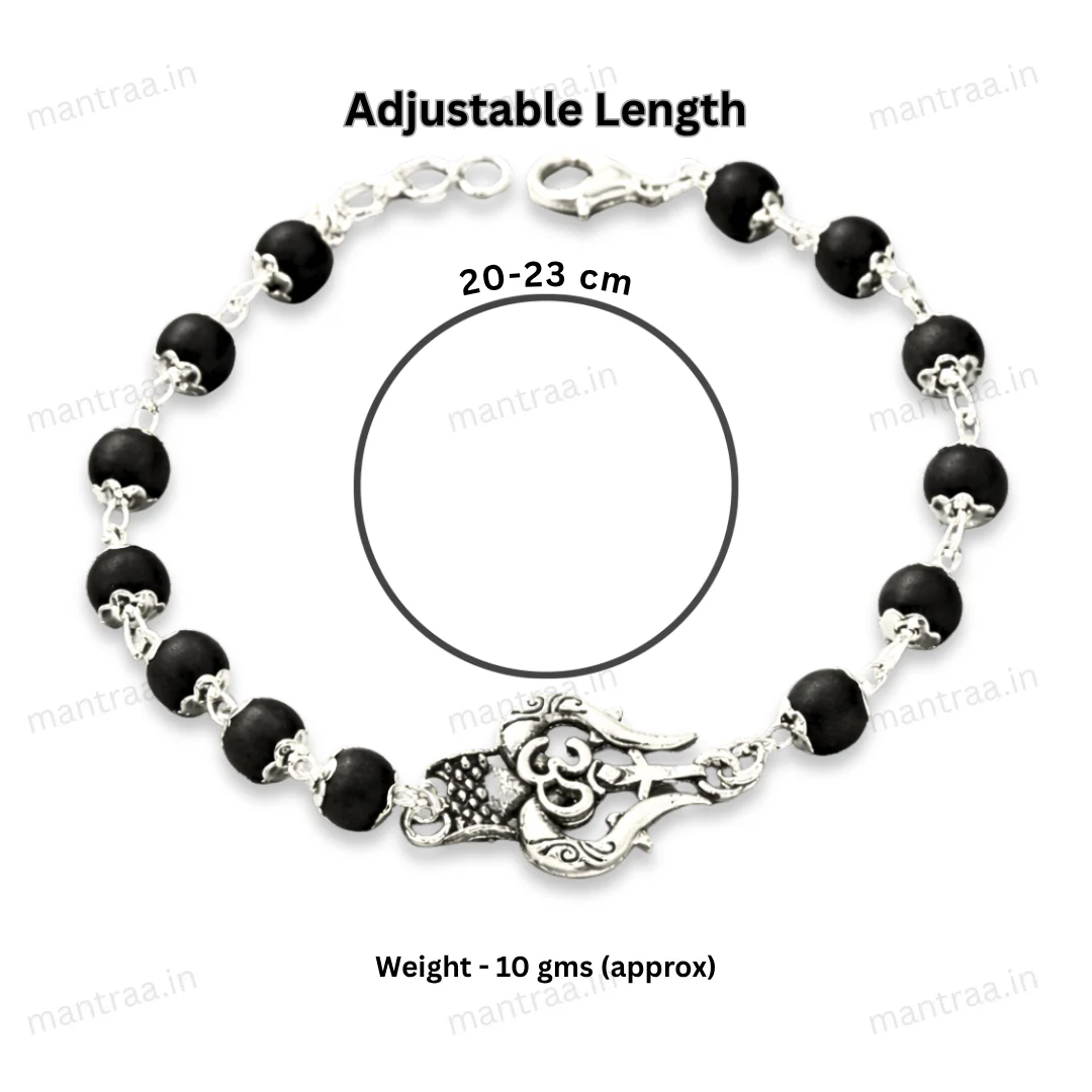 Shiv Trishul Karungali Bracelet - Silver Plated